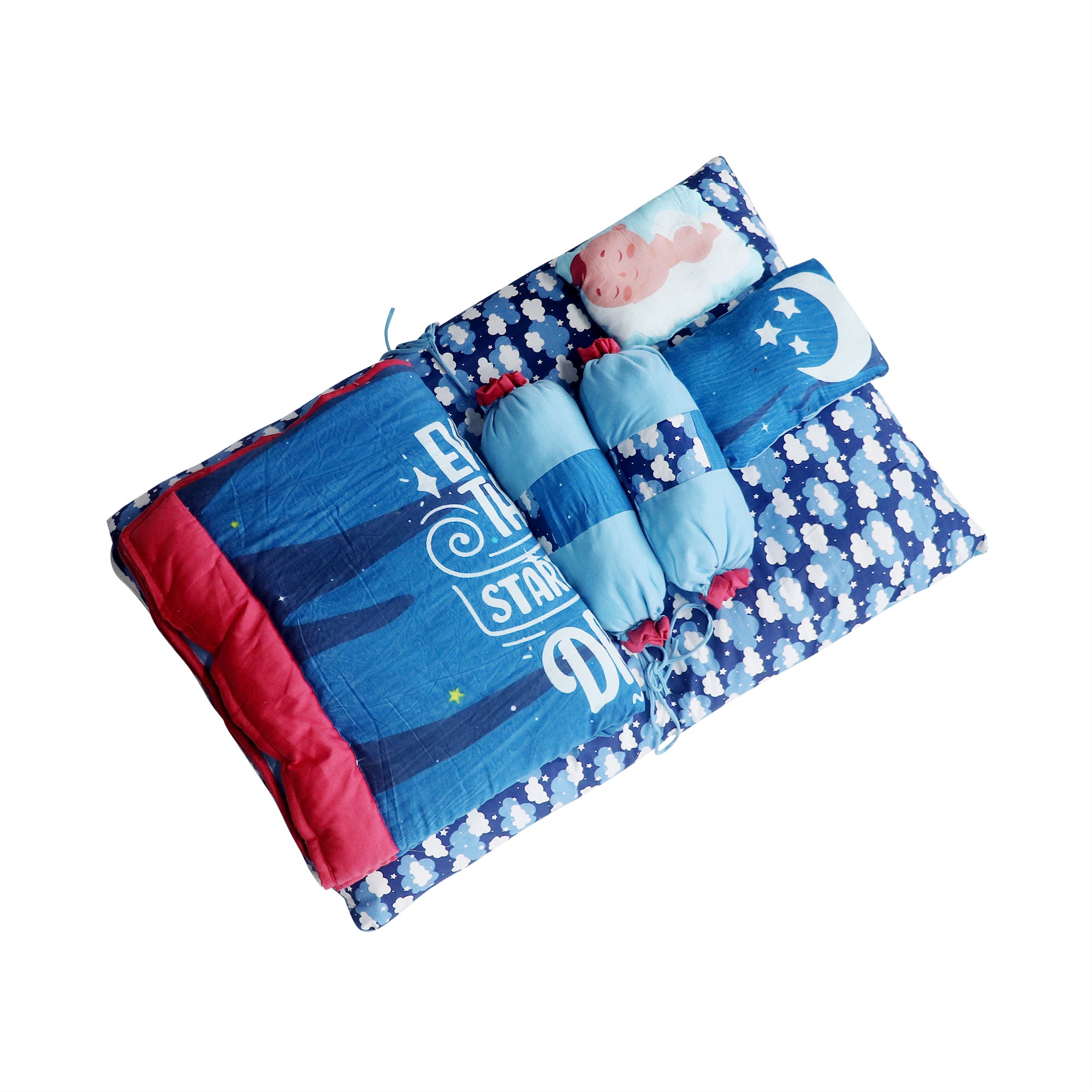 Kradyl Kroft 6 Pc Bedding Set for Infants | Baby Bedding Set | Baby Mattress with Quilt | Side Pillows | Head Pillow (Clouds)