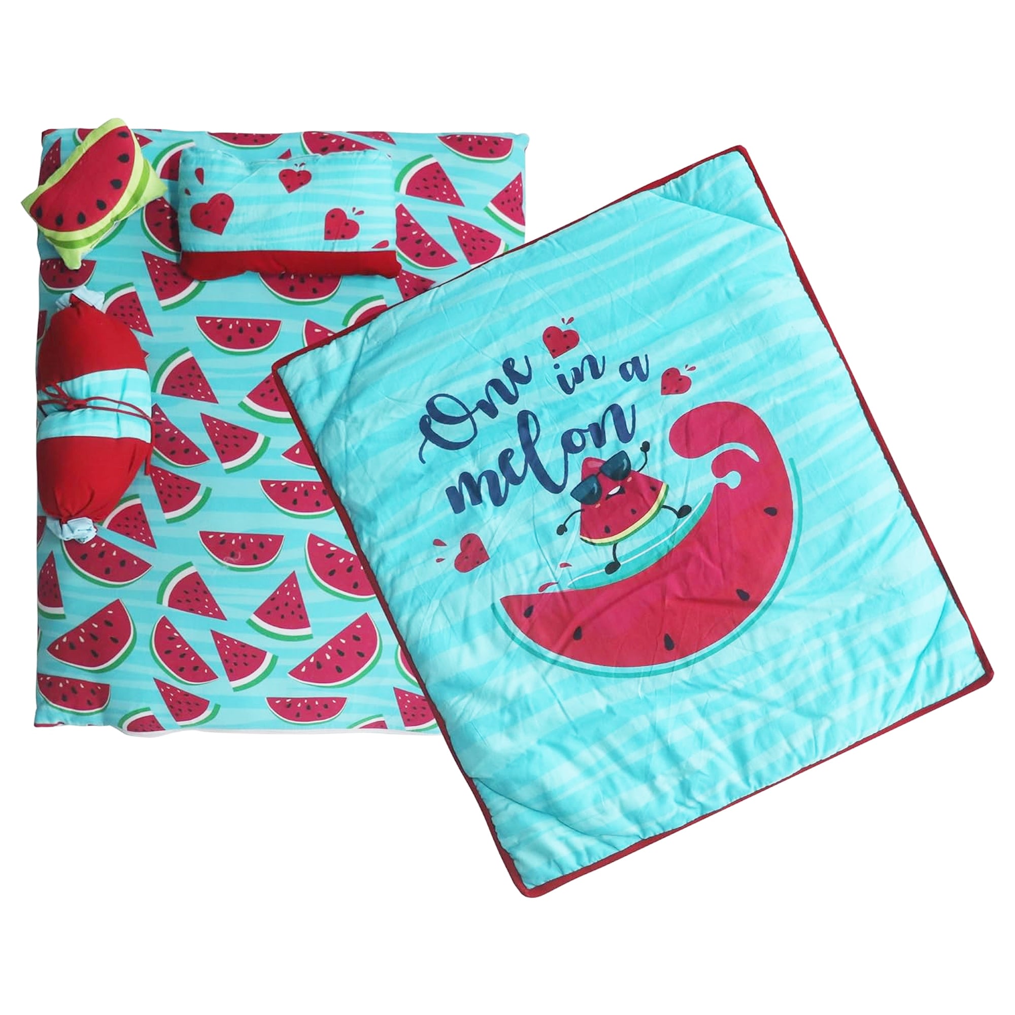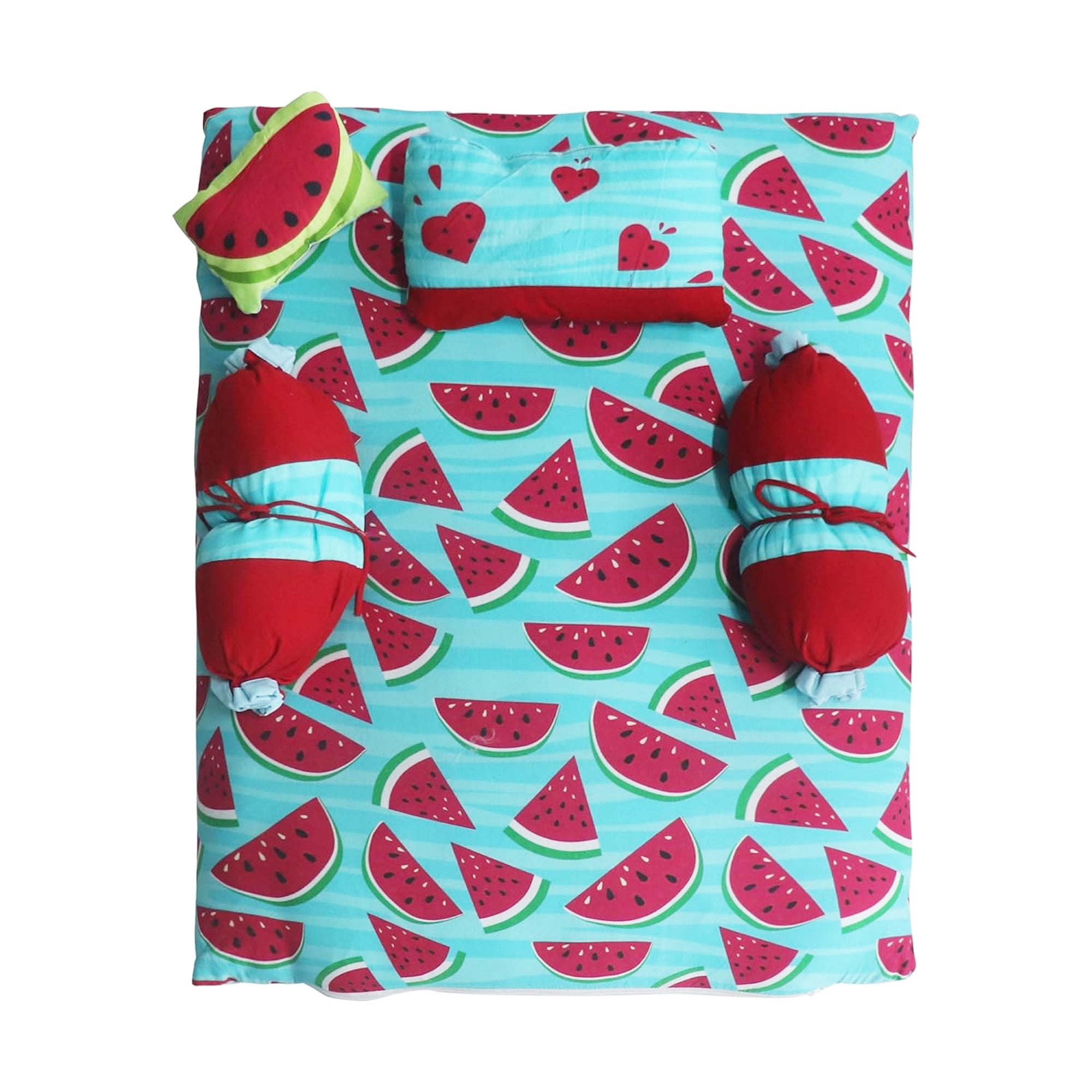 Kradyl Kroft 6 Pc Bedding Set for Infants | Baby Bedding Set | Baby Mattress with Quilt | Side Pillows | Head Pillow (One in a melon)