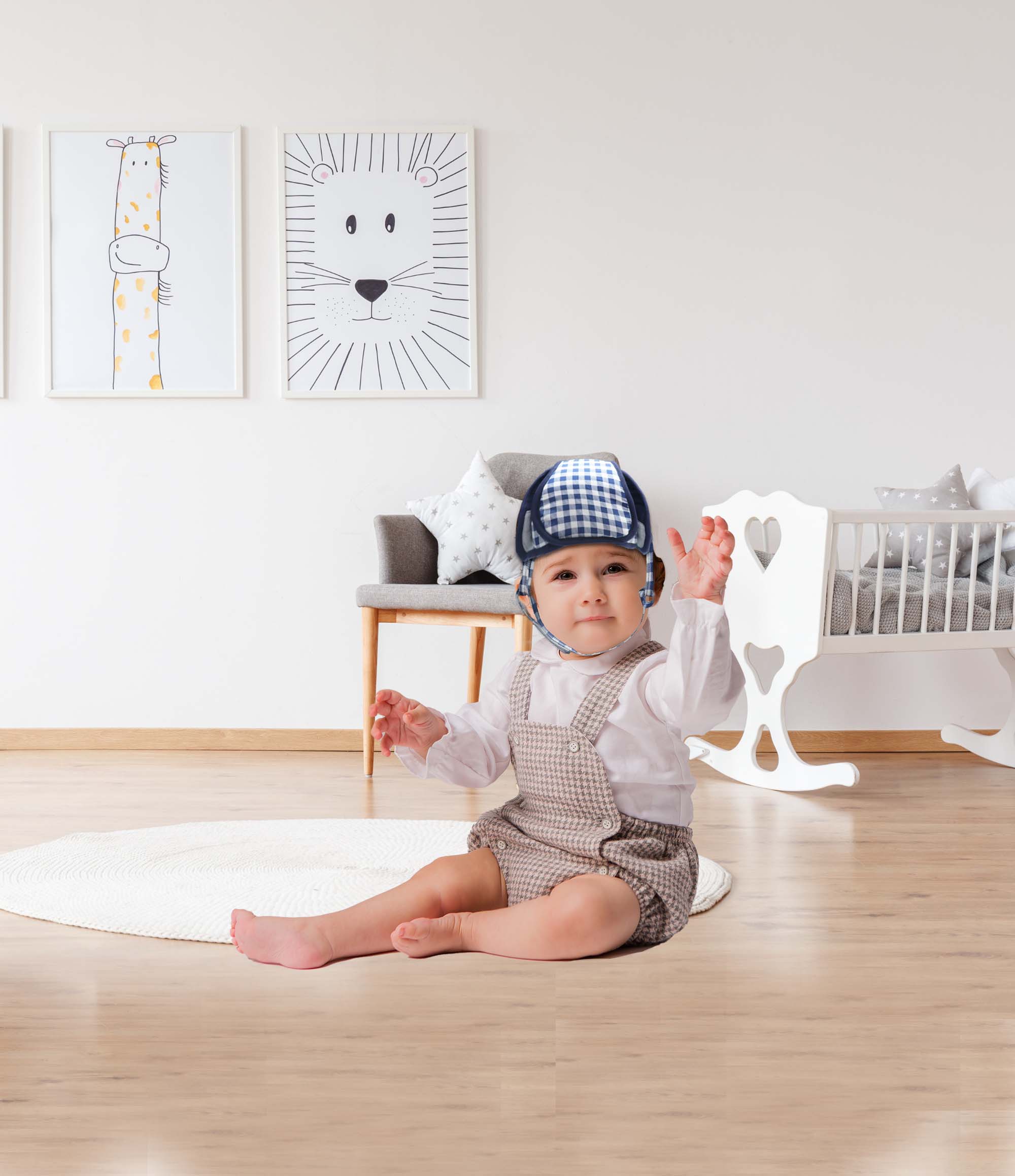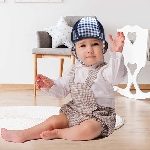Blue Checks - Kradyl Kroft Baby Safety Helmet  With Kneepads