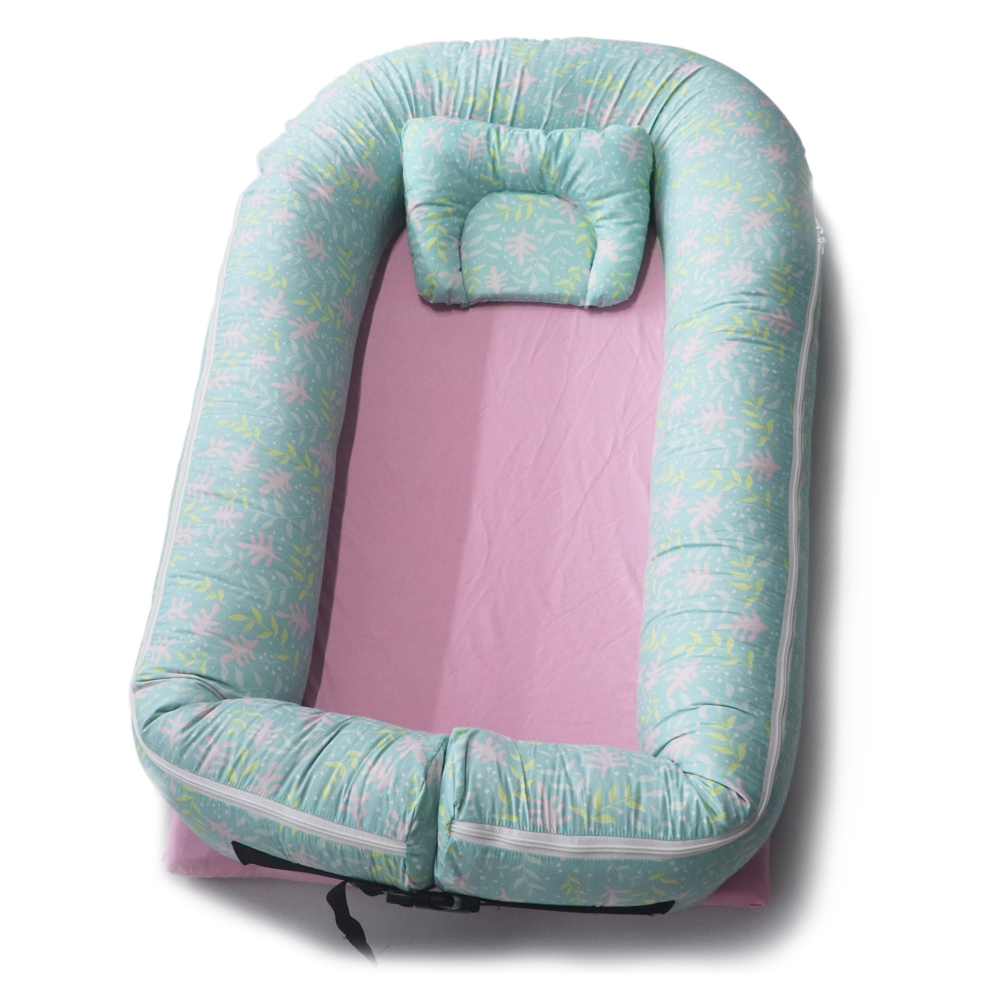 Machine Washable - There is a zipper on the bottom of the baby nest, which can be used to disassemble the cushion and the lounger bumper in the fence for easy washing.