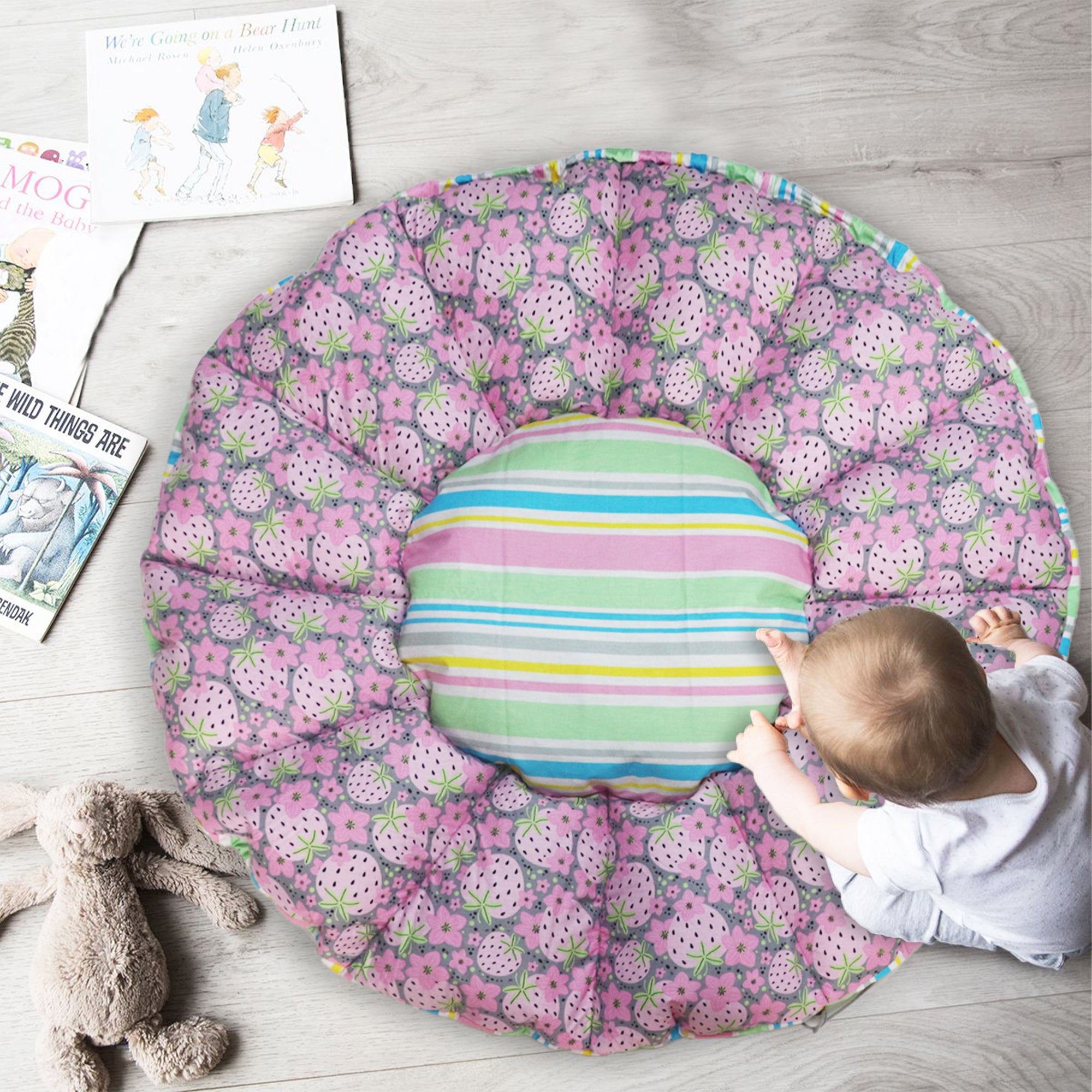 Enjoy Premium comfort and Security for Play time. Enjoyable playtimes with Kradyl Kroft Baby Play Mat cum Storage Bag | Soft Cushioned Play Mat for Kids Made from Premium 100% Cotton Fabric on top and water resistant fabric at the Bottom, this playmat is perfect for use indoors or outdoors in the garden or beach. Plus it rolls up and can be used as a toy storage Sack. Layered with Soft Foam and Fibre, this Playmat is soft and comfortable for kids to play. Ideal usage New Borns upto 7 Years. Vibrant Prints add a touch of class to any room decor and makes for a perfect log time cherish able gift. Washable - Do not Wring, Dry Flat.