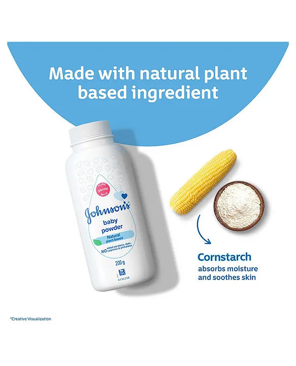 The Johnson's baby powder natural is made with natural cornstarch, a plant-based ingredient. It absorbs excess moisture and leaves baby's skin feeling fresh and comfortable. It provides 2x* more moisture absorption (*vs. talc-based powder) to help keep your baby's skin dry & soft. It comes with the iconic, long-lasting Johnson's fragrance, which is IFRA certified. The Johnson's baby powder natural helps soothe baby skin and helps prevent skin irritation. It absorbs excess moisture and sweat to help protect skin against chafing & diaper rash. It is a safe powder made especially for babies and has no added parabens, sulphates, dyes & phthalates. The Johnson's baby powder natural is dermatologist-tested and hypoallergenic. It is clinically proven to be gentle and mild for your baby's skin. It is designed for newborn skin and is for all skin types.