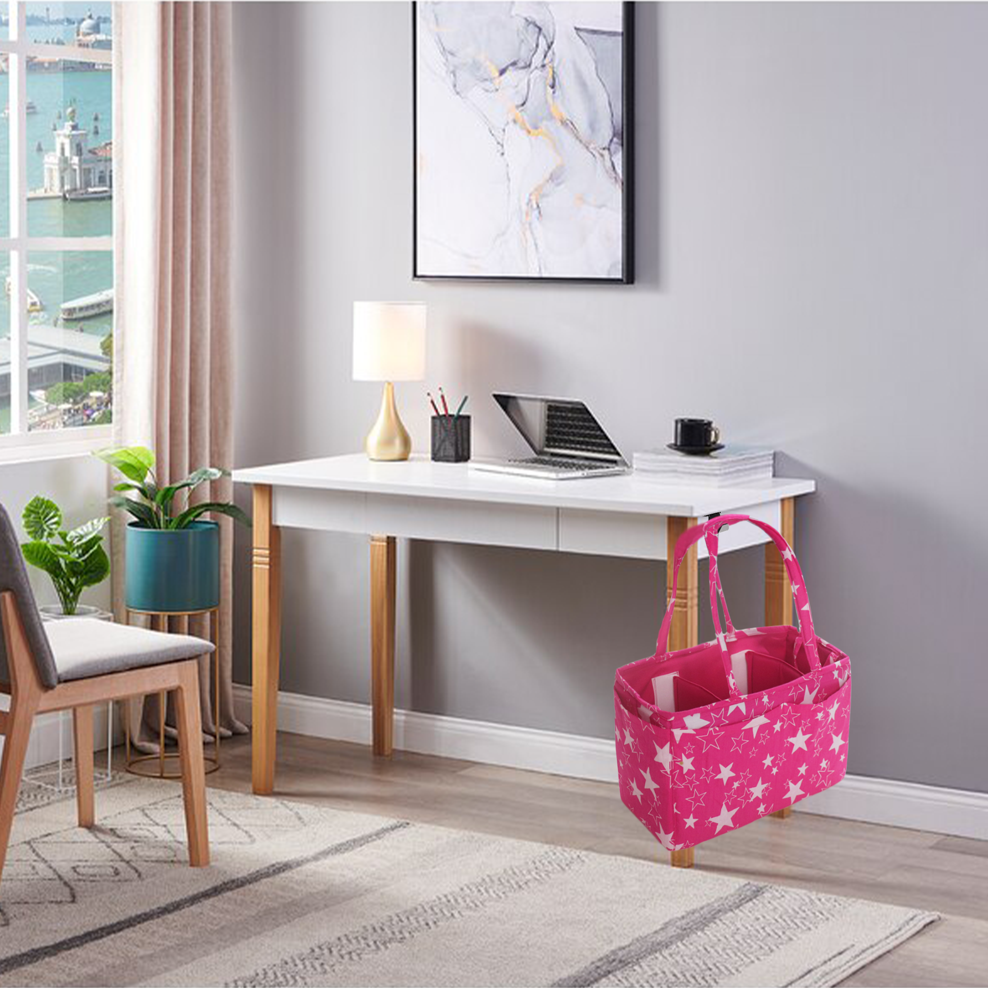 • REMOVABLE ORGANIZER INSERT - Remove the diaper organizer insert to use as a toy storage bin, baby hamper or nursery basket for additional nursery storage. You can adjust the compartments as you wish. Our lightweight, portable diaper caddy is made of padded fabric o the outside and water resistant fabric on the inside and features outer pockets with handles for additional baby storage.