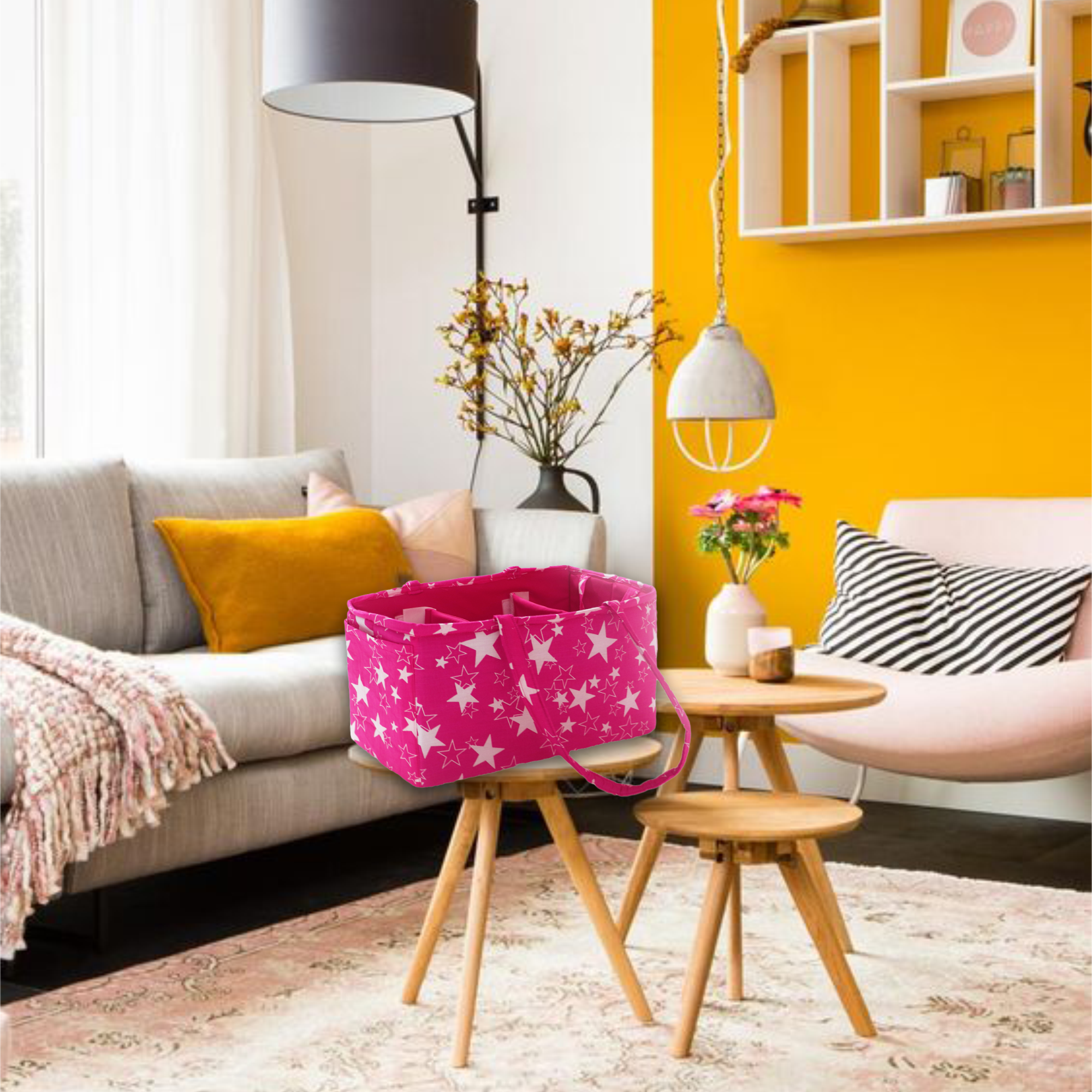 • DESIGNED TO COMPLIMENT YOUR NURSERY DECOR - Our diaper caddy/ storage  basket is designed with neutral grey colors to look good in any room. It looks good on your changing table, on top of a dresser or next to the diaper pail and is an essential item for your diaper changing station. Easily move the tote around using the long handle.