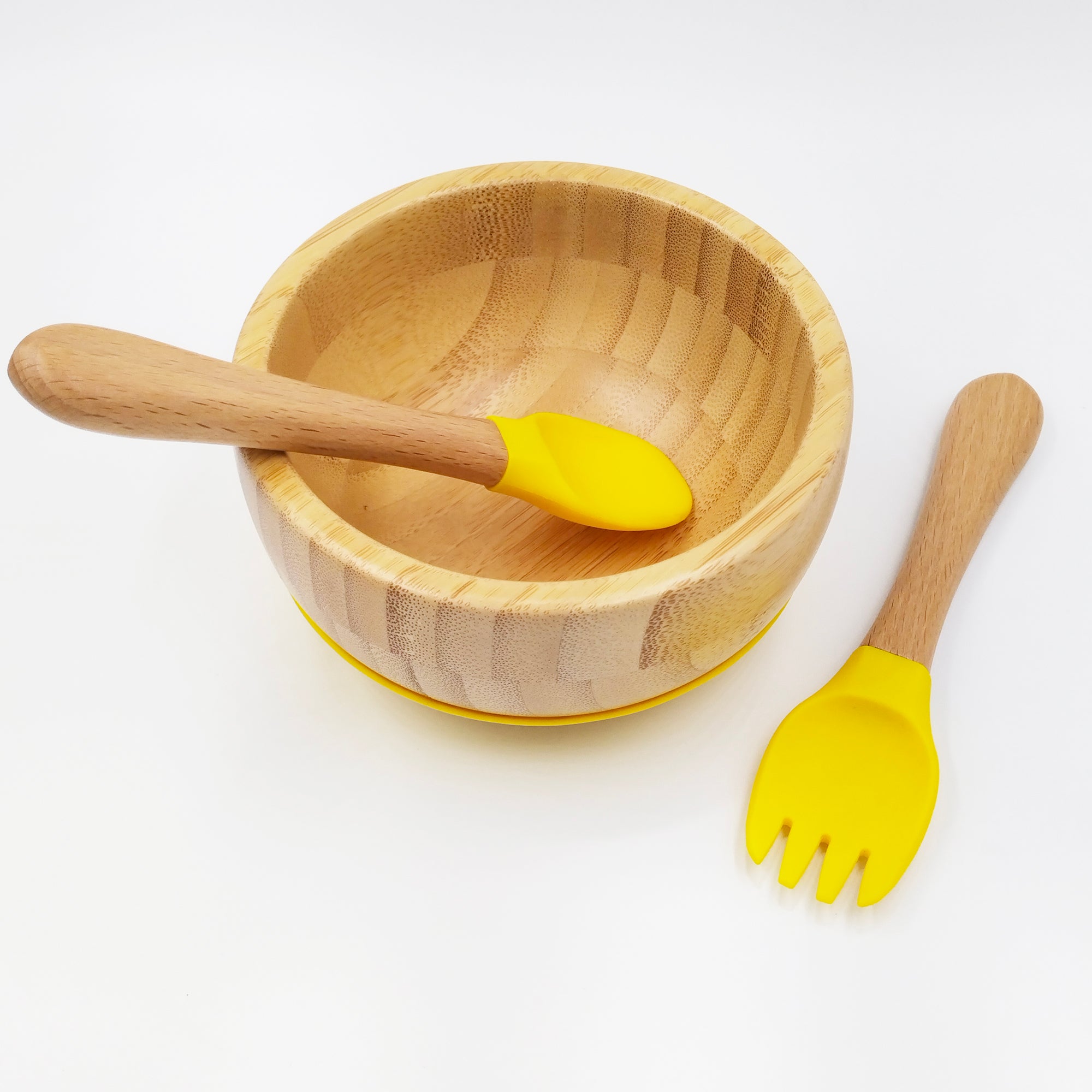 Bamboo Yellow- Kradyl Kroft Bamboo Silicone Bowl & Spoon Set for Babies and Toddlers