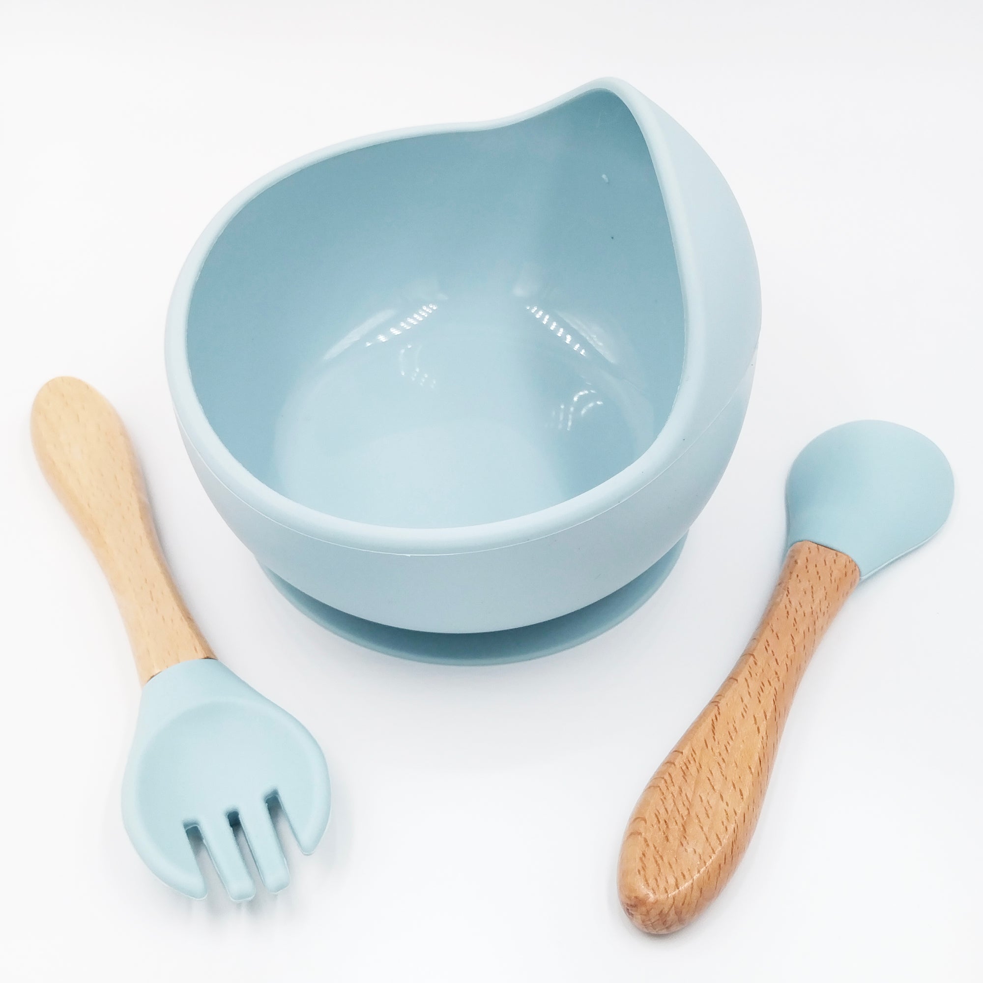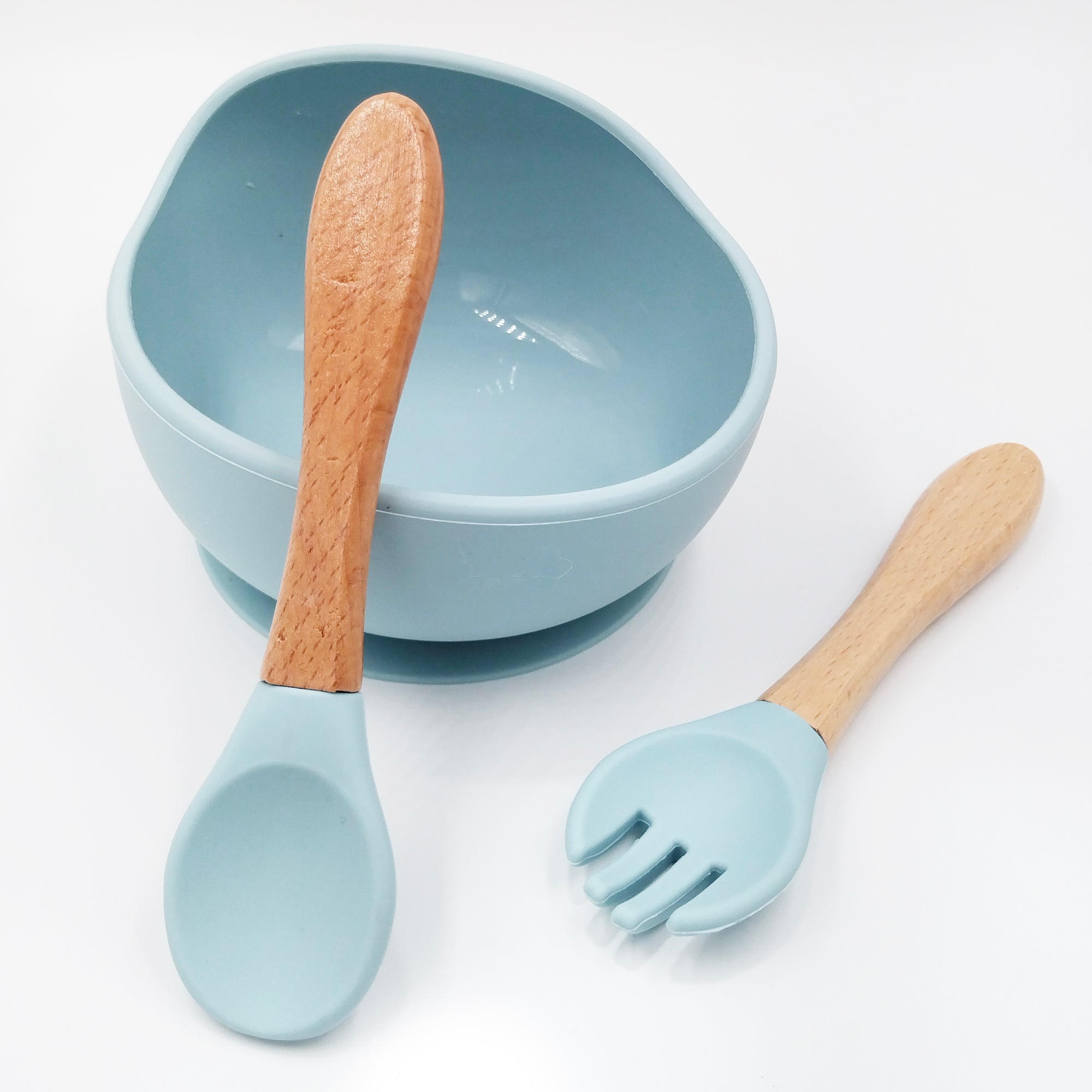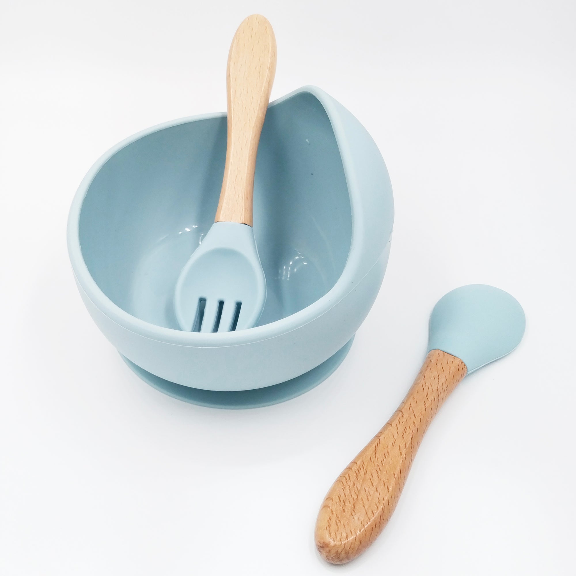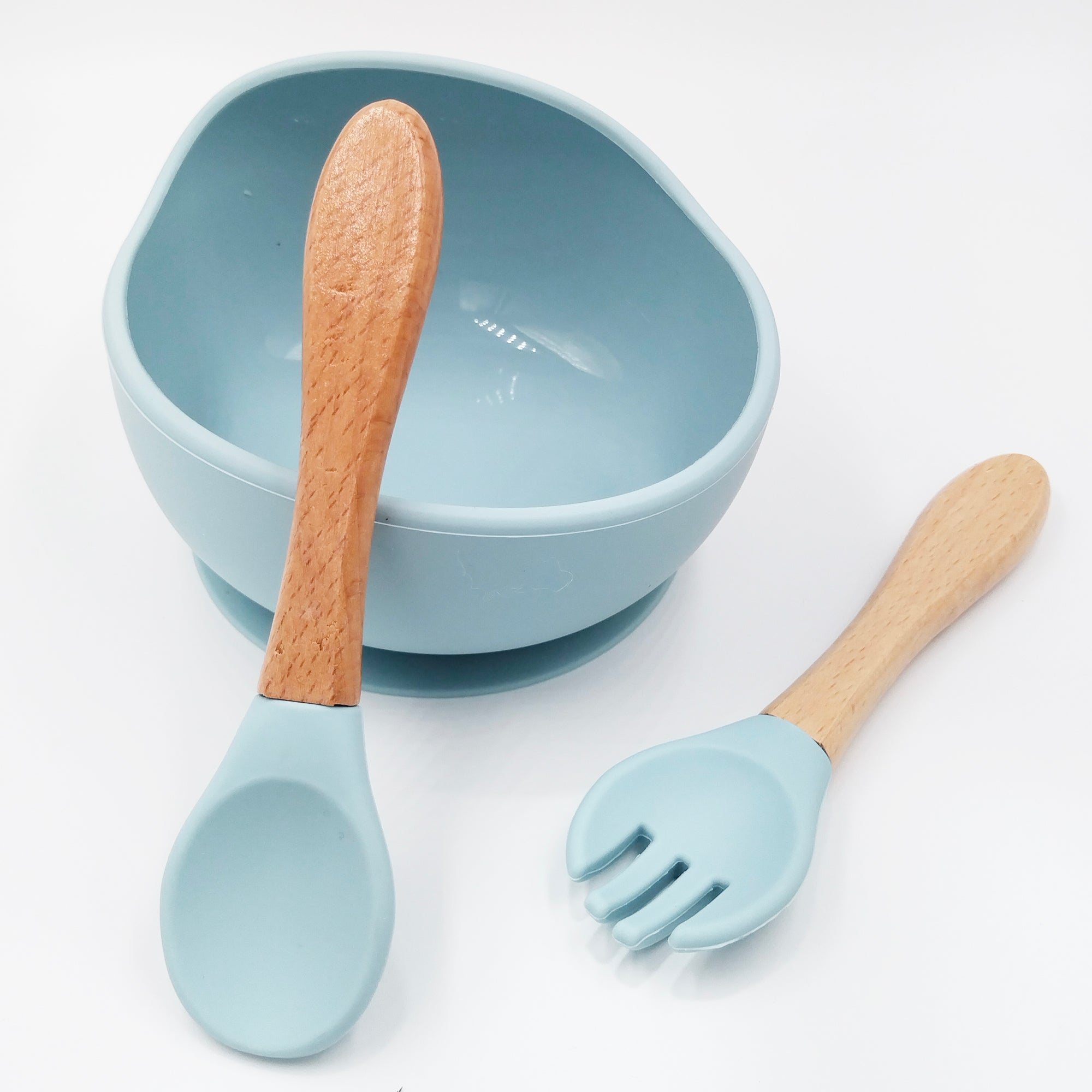 Slicone Blue- Kradyl Kroft Bamboo Silicone Bowl & Spoon Set for Babies and Toddlers