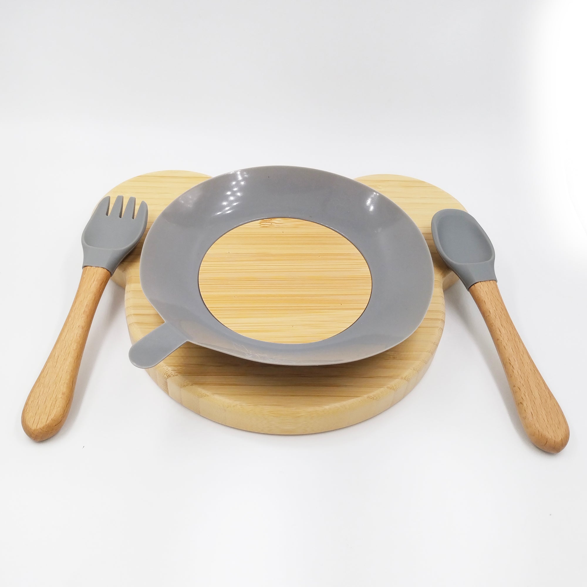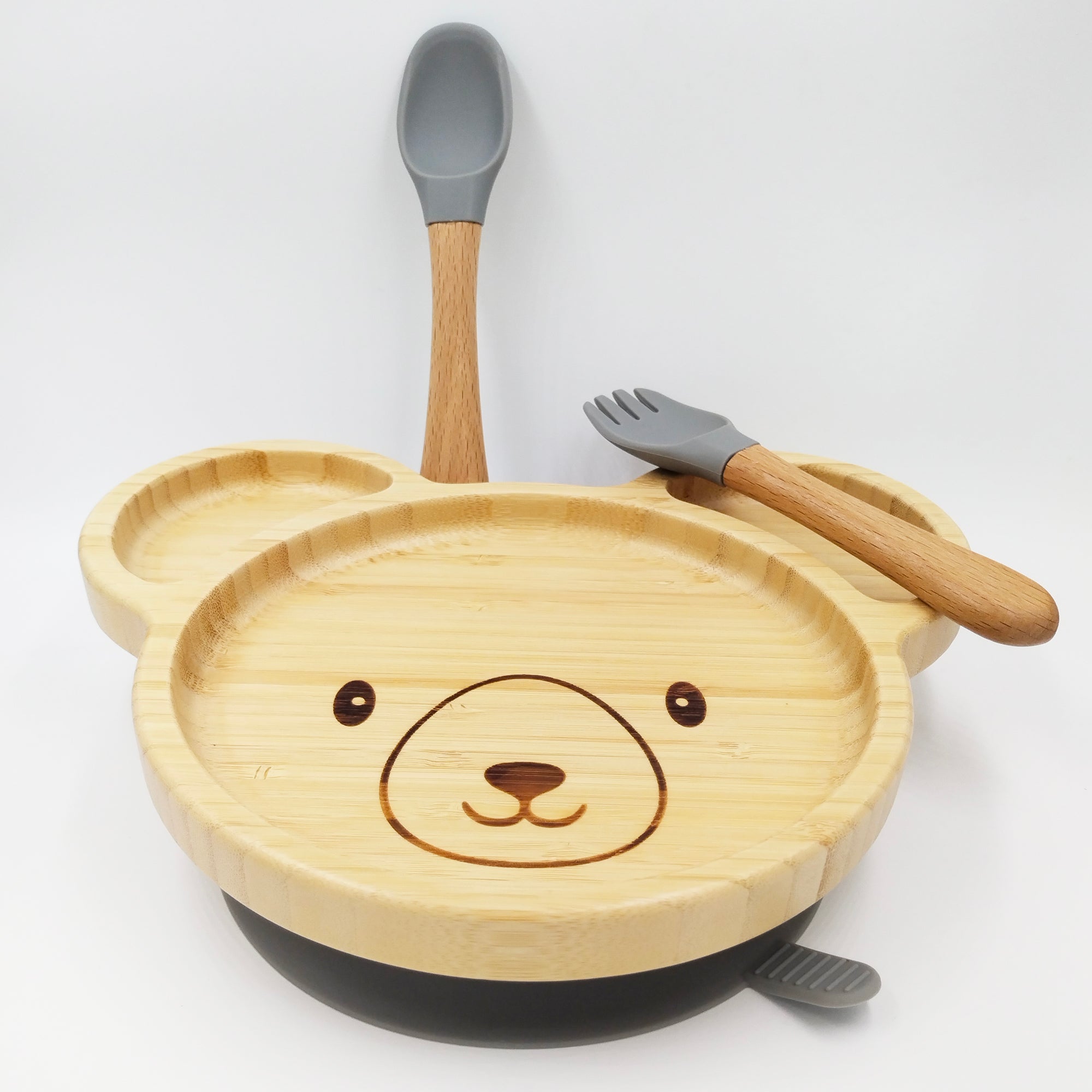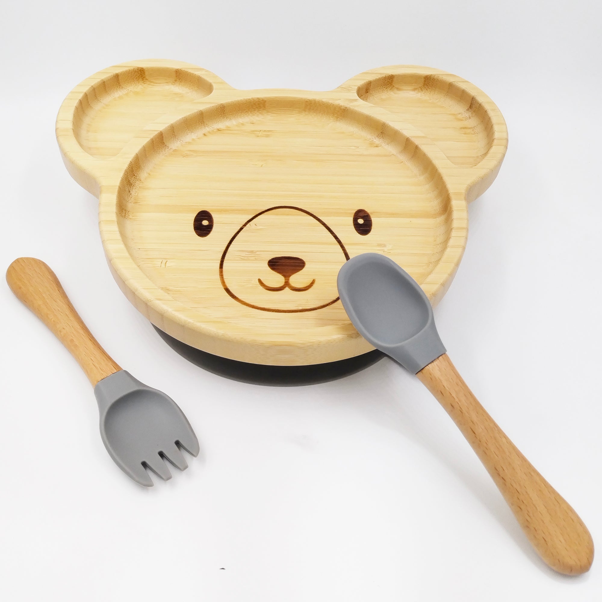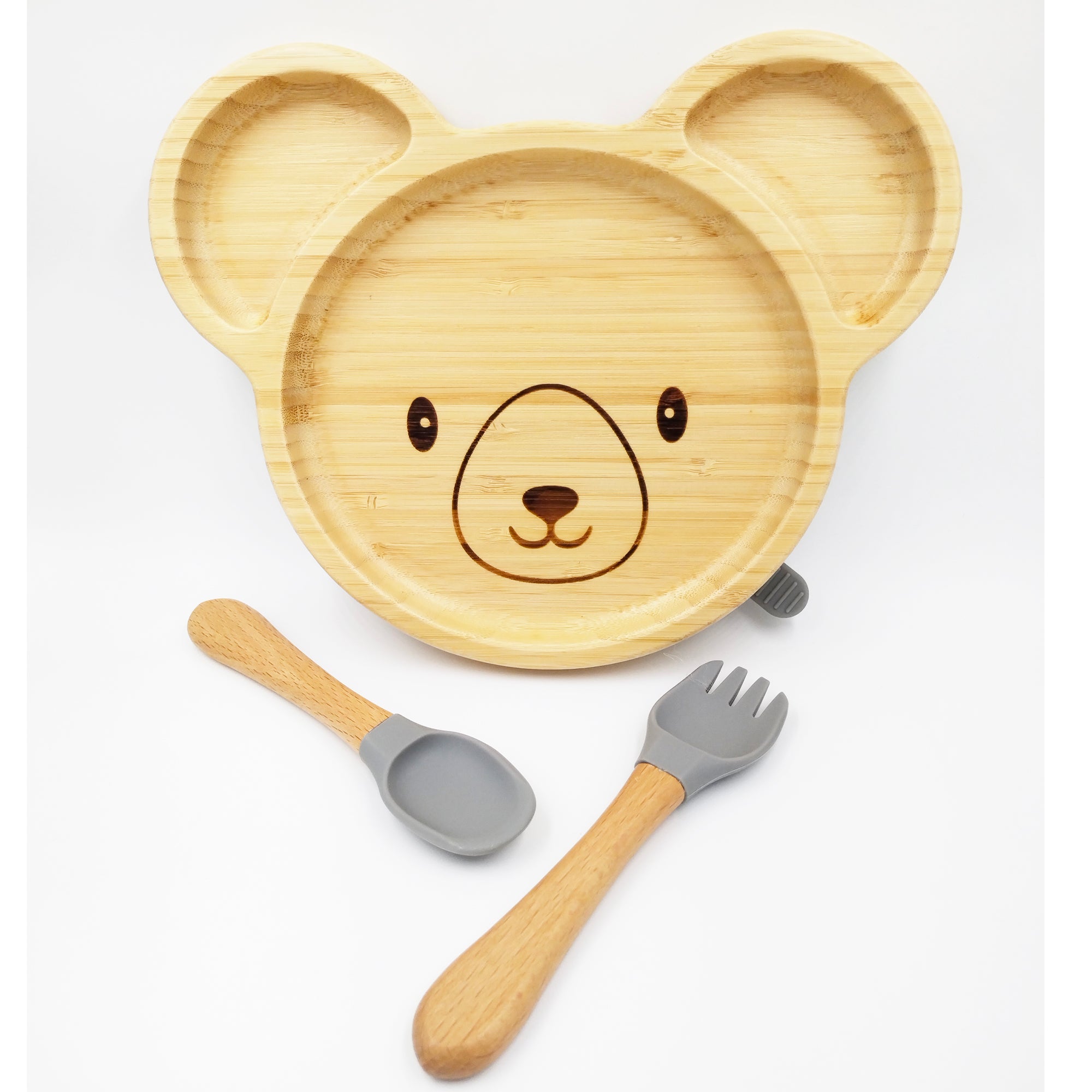 Teddy Grey- Kradyl Kroft Bamboo Silicone Bowl & Spoon Set for Babies and Toddlers