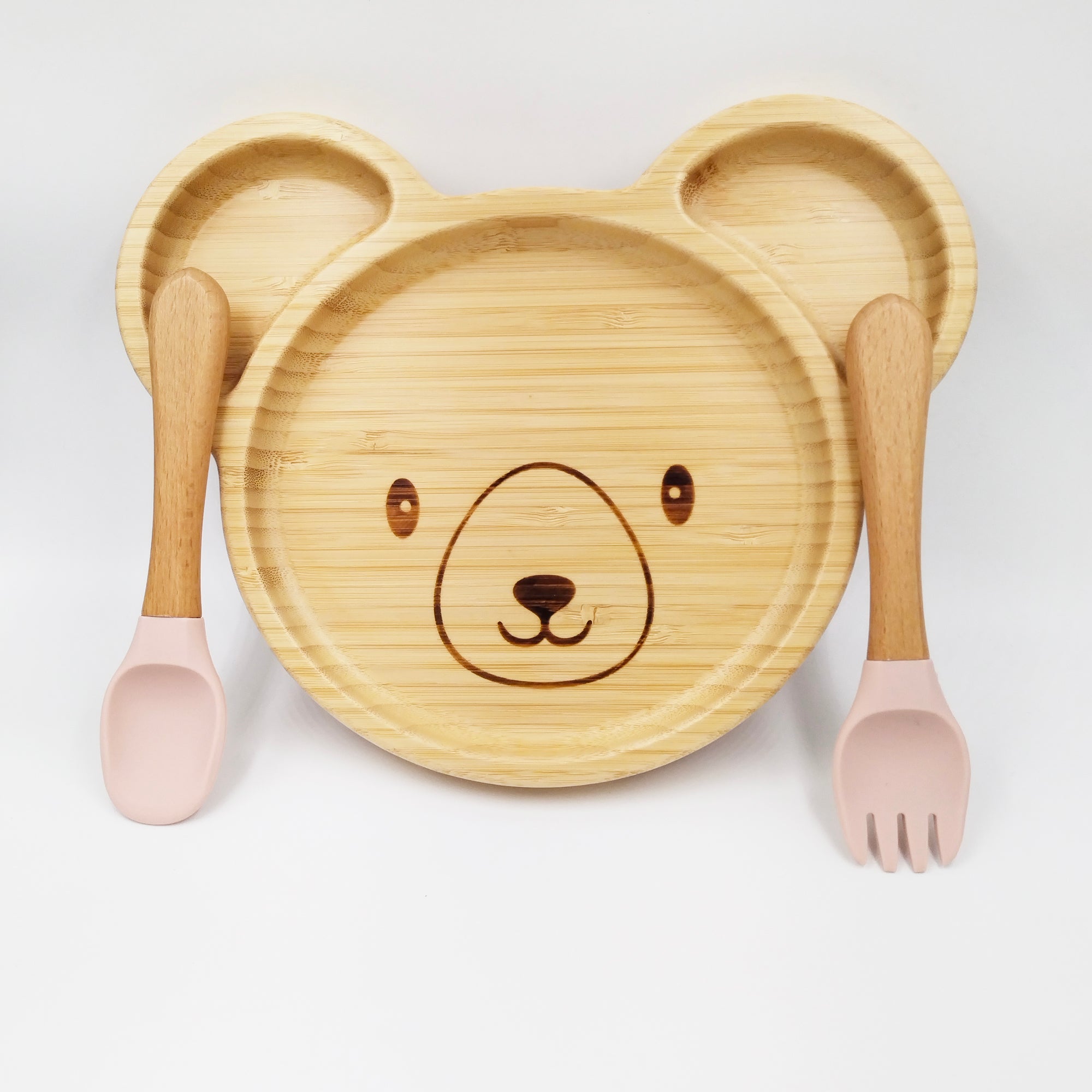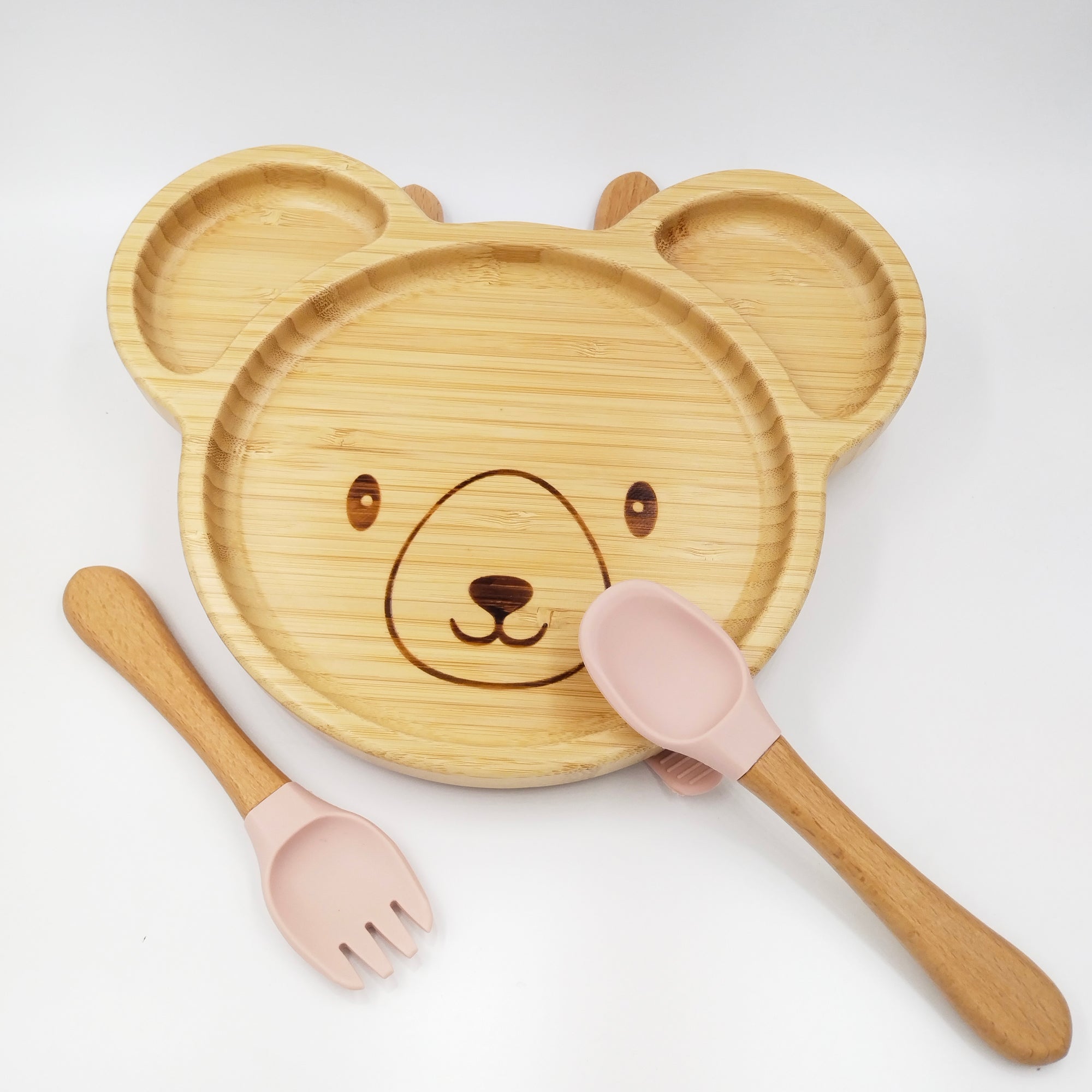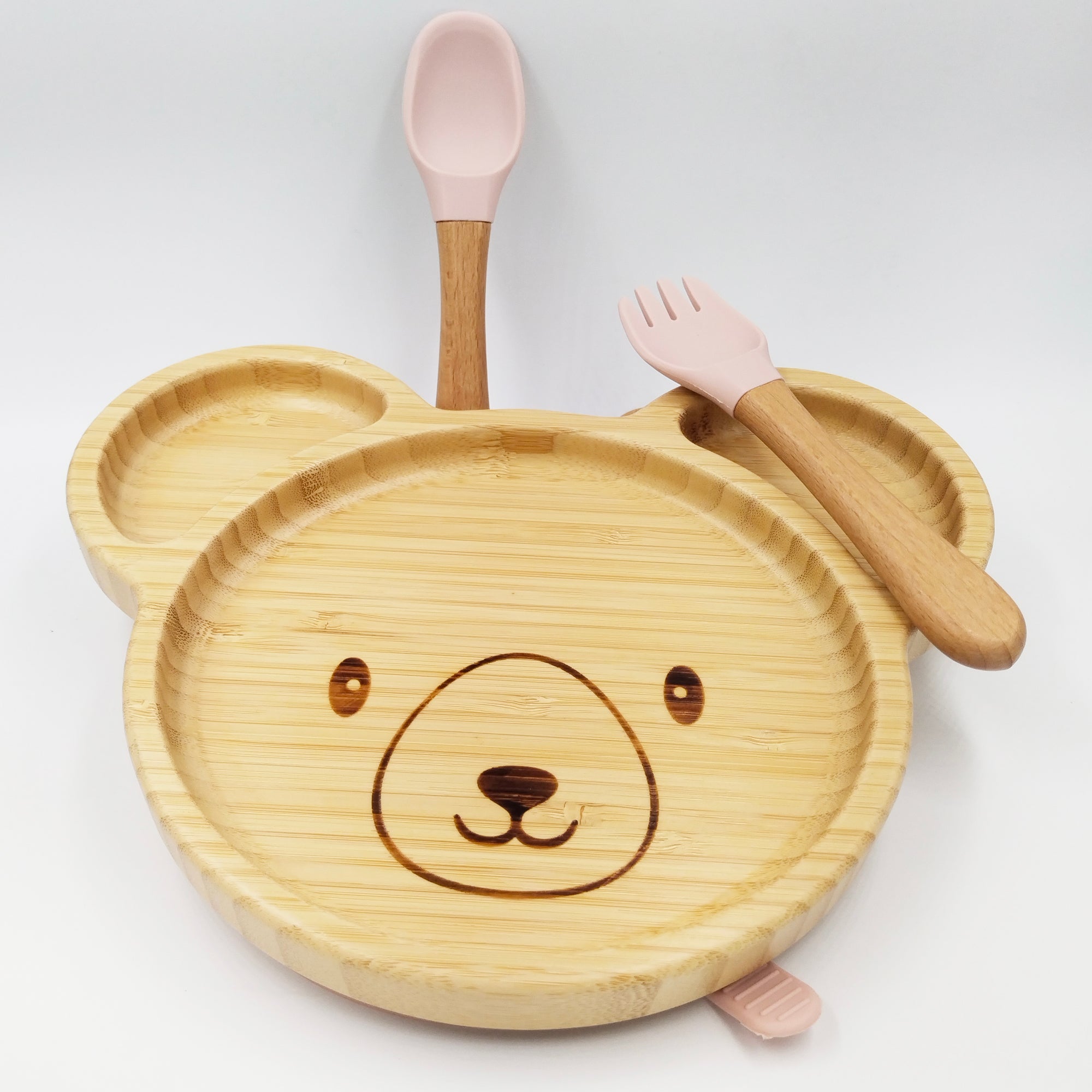 Teddy Pink- Kradyl Kroft Bamboo Silicone Bowl & Spoon Set for Babies and Toddlers