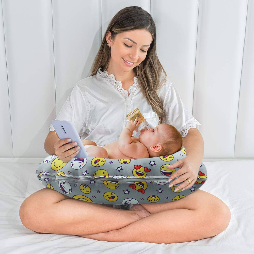 KRADYL KROFT 5in1 Baby Feeding Pillow with 100% Cotton Detachable Cover Belt and Baby Hoop - Smilie