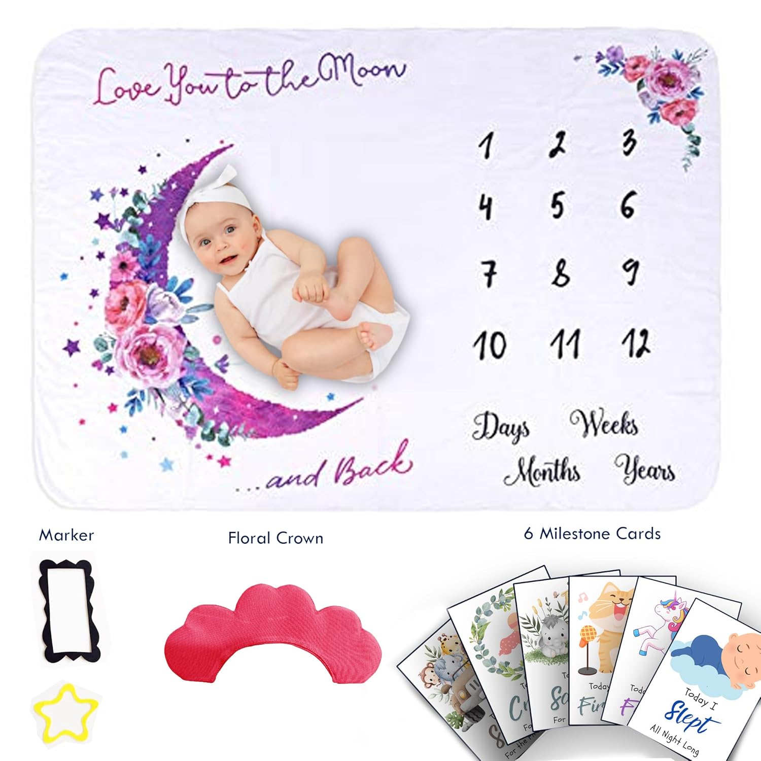 Pink Moon- Milestone Blanket Quilt with 6 Milestone Cards and Markers