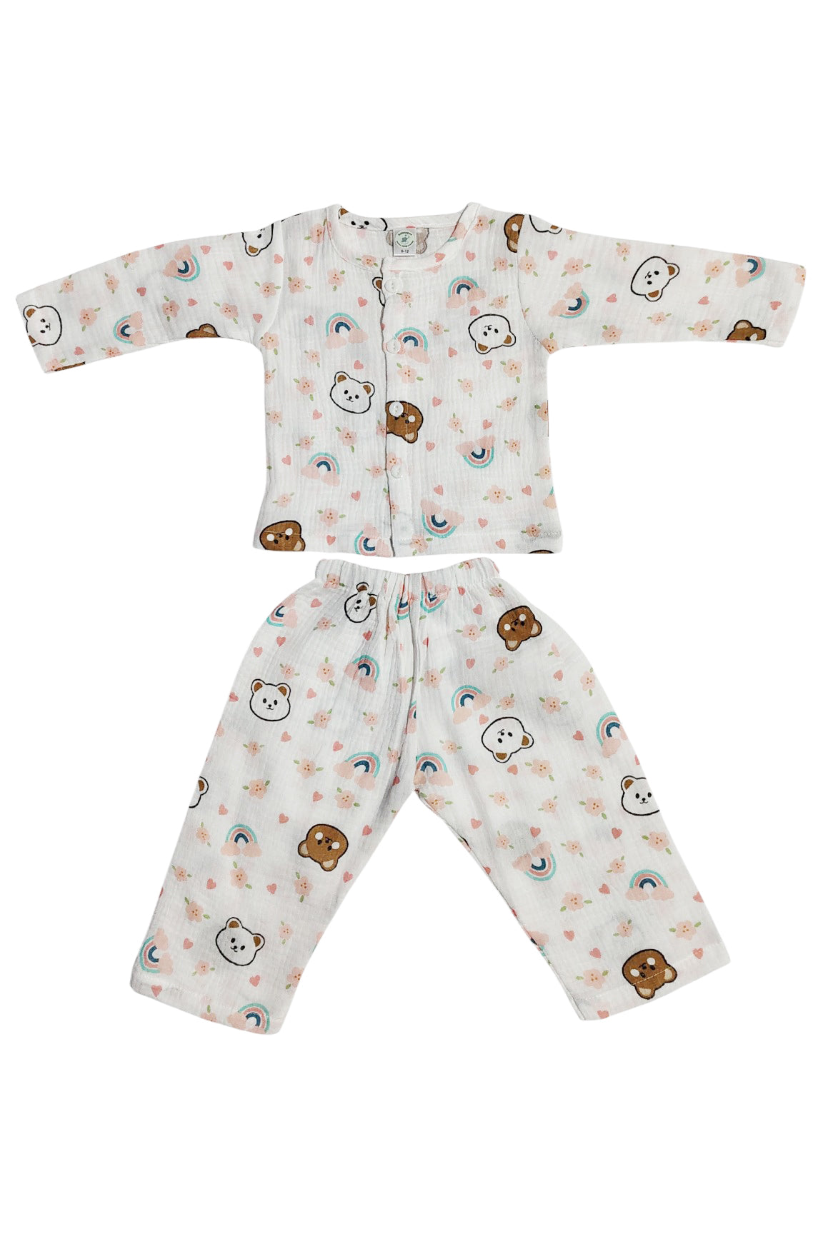 Kradyl Kroft Rainbow Double Layered Soft Muslin Night Suit Set for New Born to 36 Months