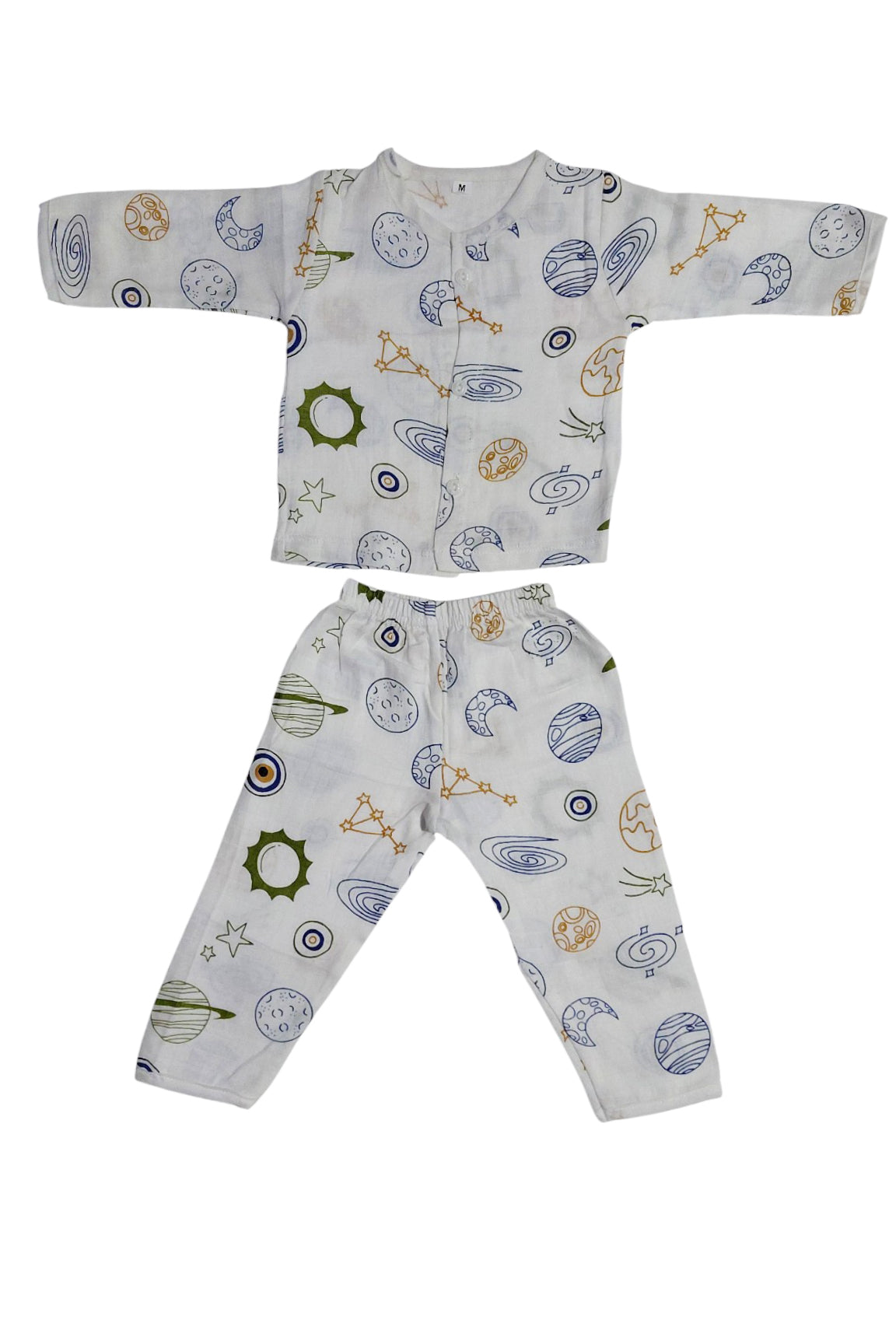 Kradyl Kroft Single Layered Checkered Soft Full Sleeve Muslin Night Suit Set for New Born to 24 Months - Venus