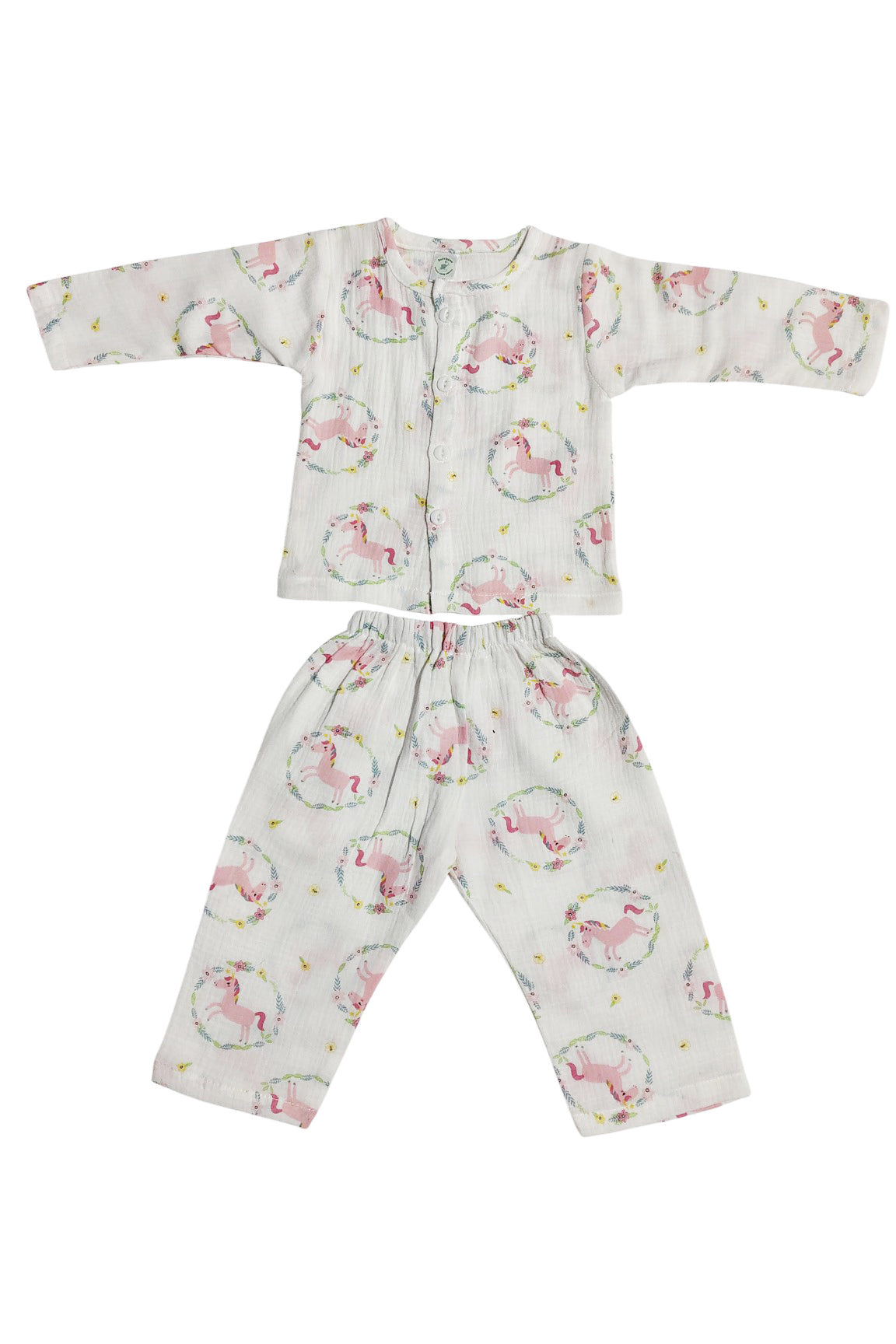 Kradyl Kroft Unicorn Double Layered Soft Muslin Night Suit Set for New Born to 36 Months