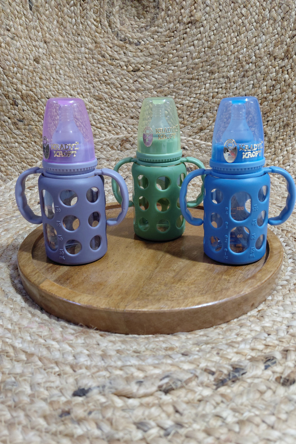 Kradyl Kroft Natural Response Plastic Baby Bottle with handle - 120 Ml |Baby Milk Bottle |BPA Free for Babies with 3M+ Teat