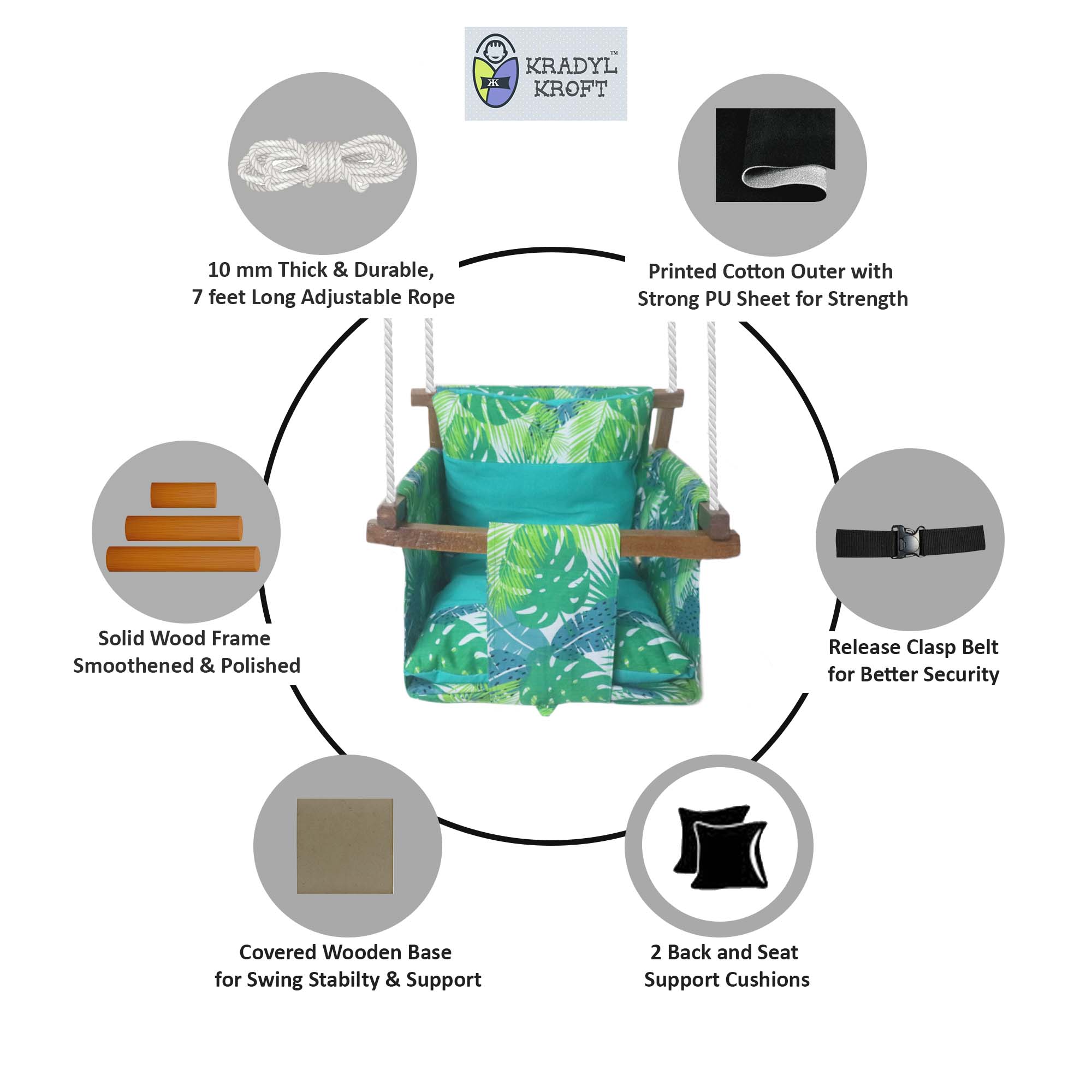 Hexlove - Baby Swing | Jhula | Wooden Base