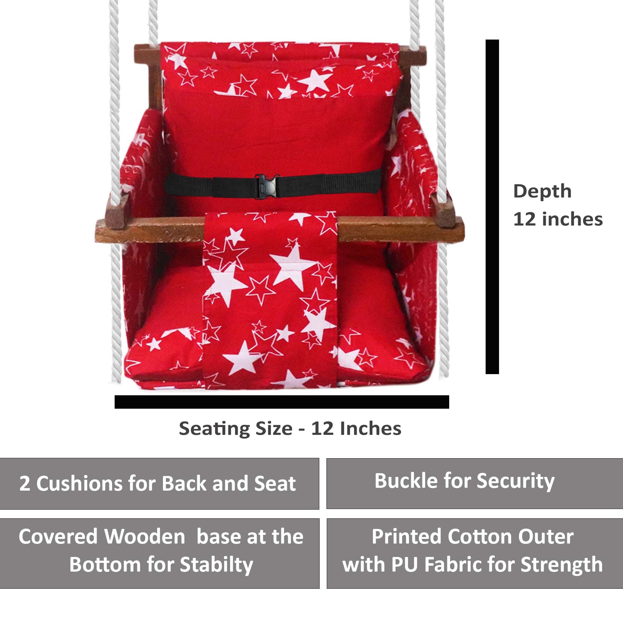 Red Star - Baby Swing | Jhula | Wooden Base