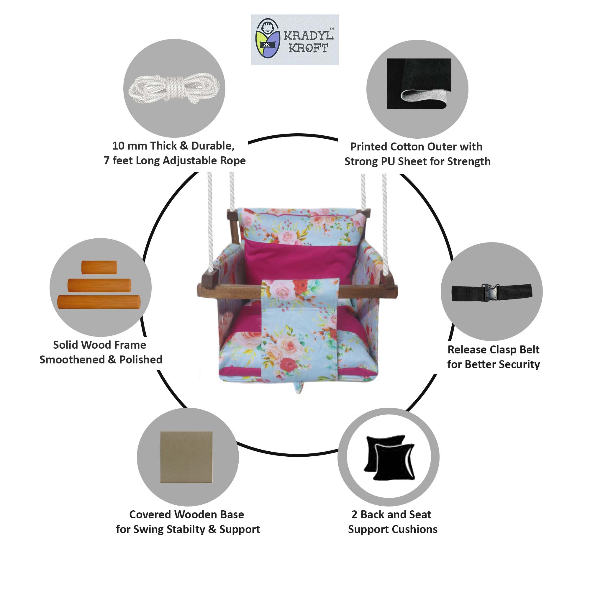 Floran- Baby Swing | Jhula | Wooden Base