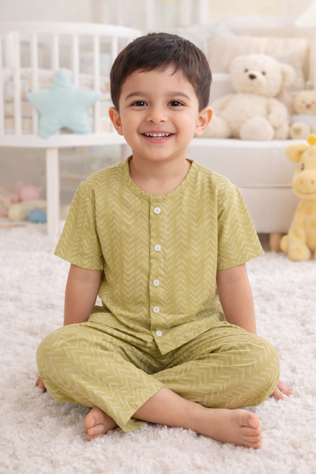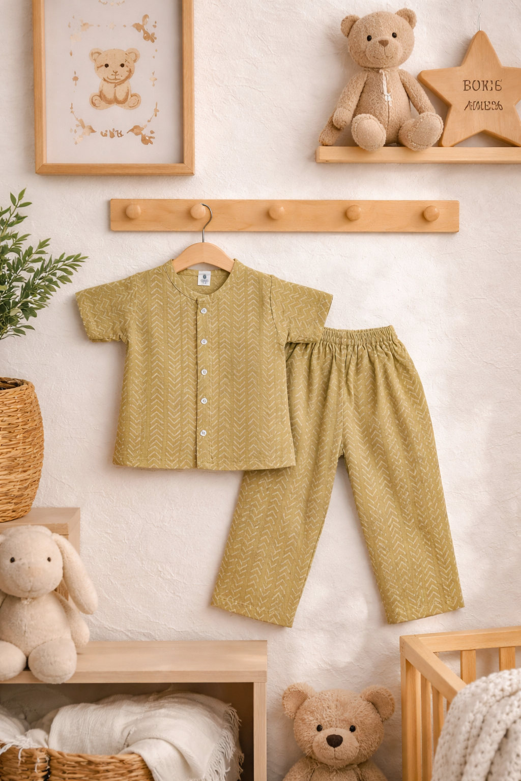 Earth Green |Half Sleeves| Checkered Muslin| Soft Unisex Muslin Set for New Born to 6 Years