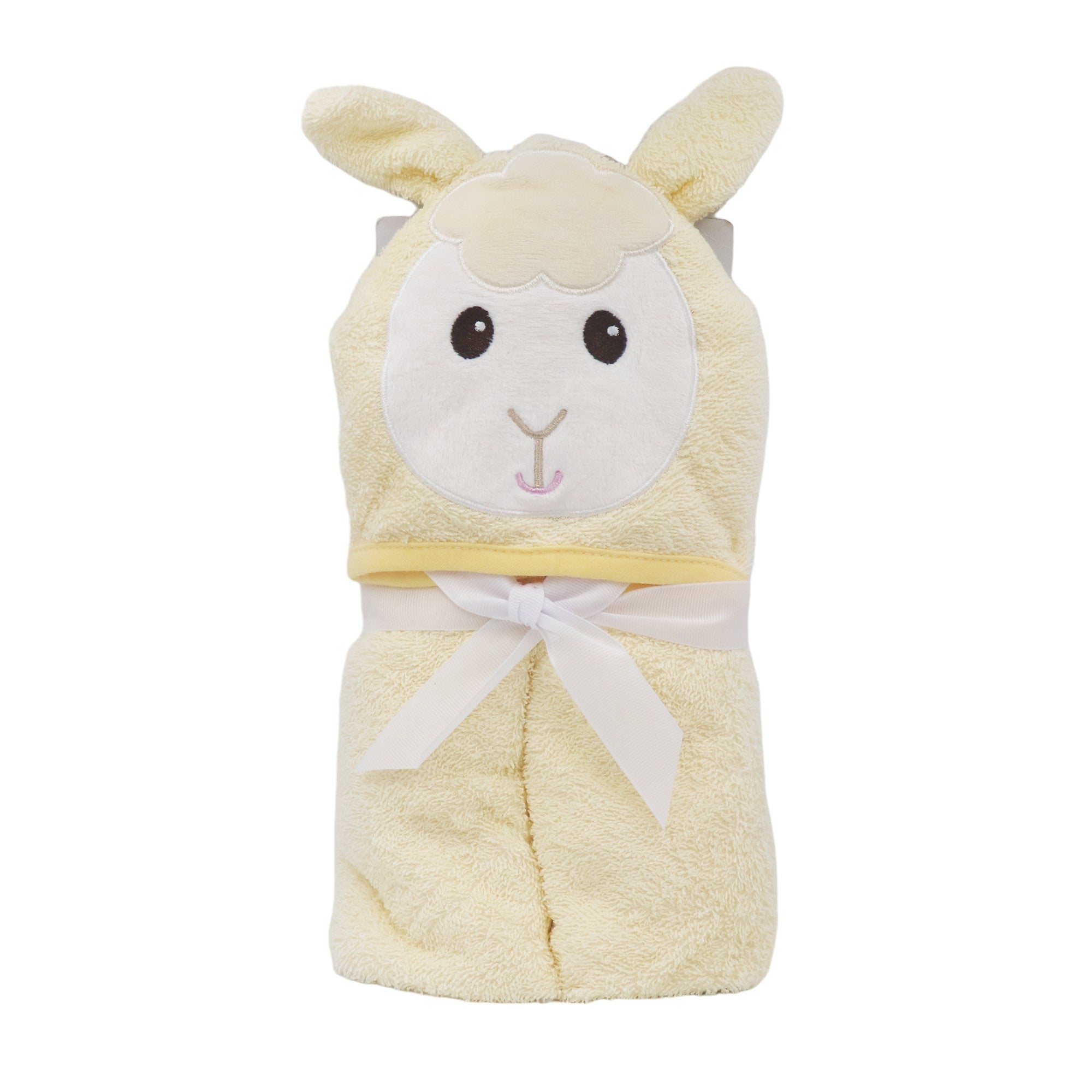 Yellow Sheep Cotton Hooded Baby Bath Towel with Baby Loofah